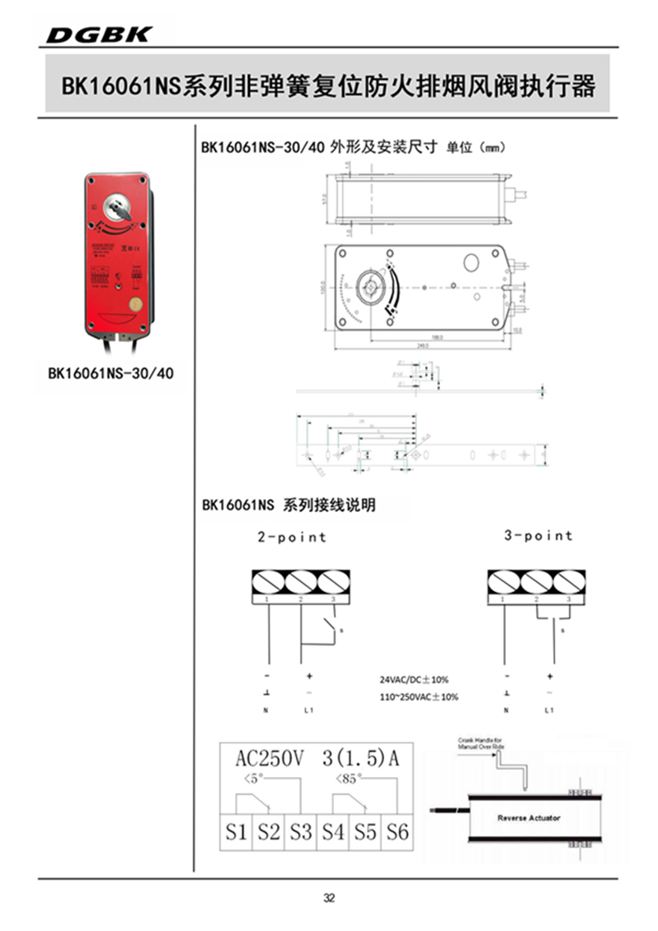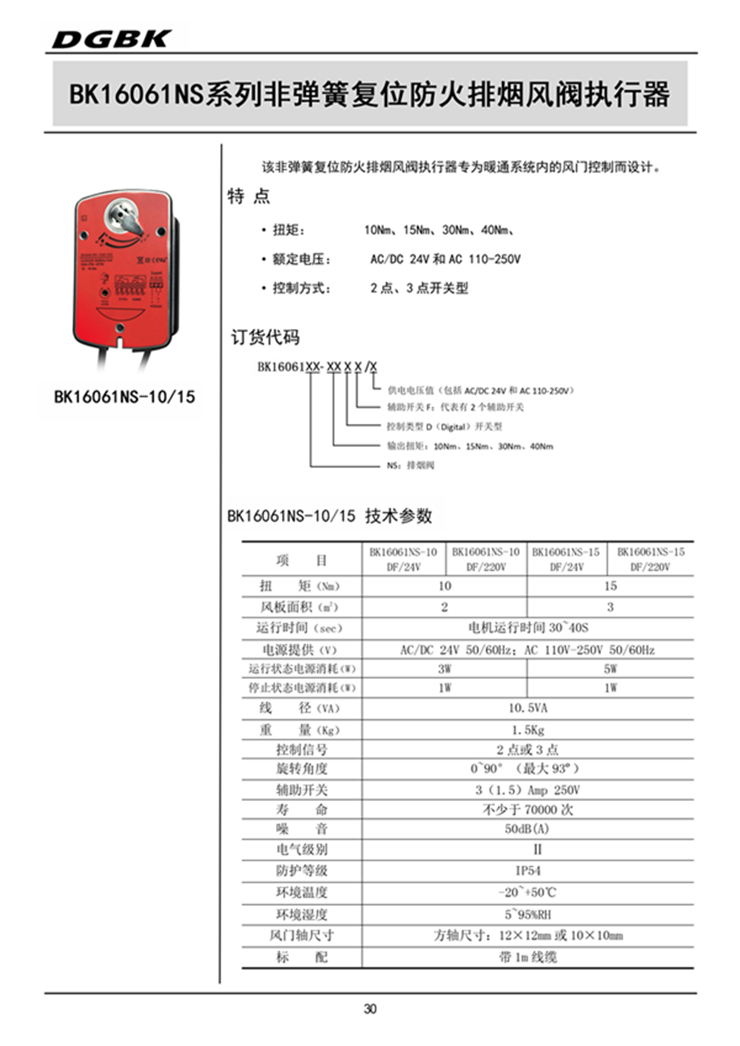 • BK16061NS 系列非弹簧复位防火排烟风阀执行器
